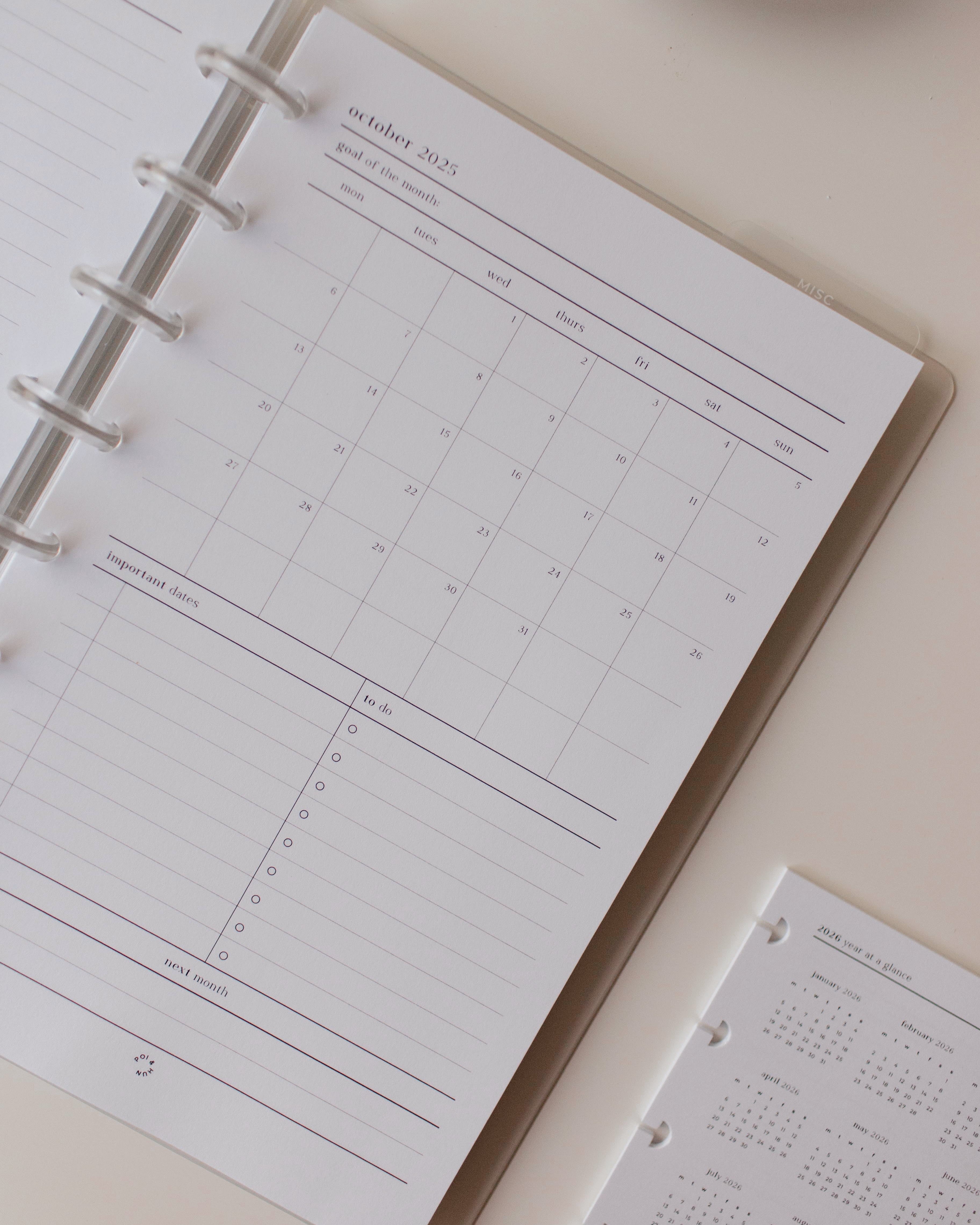 2026 Month On 1 Page Planner Inserts | Original Collection