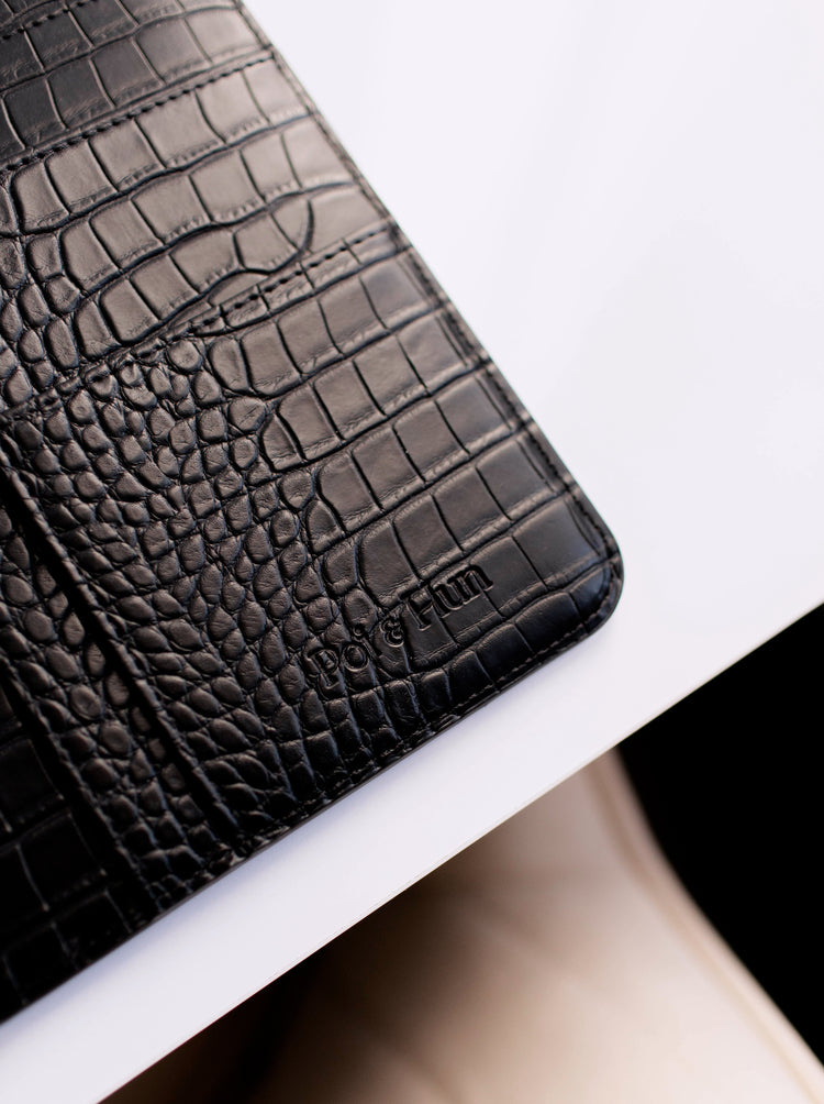 - Vegan Leather in Black Croc + Soft Taupe Croc