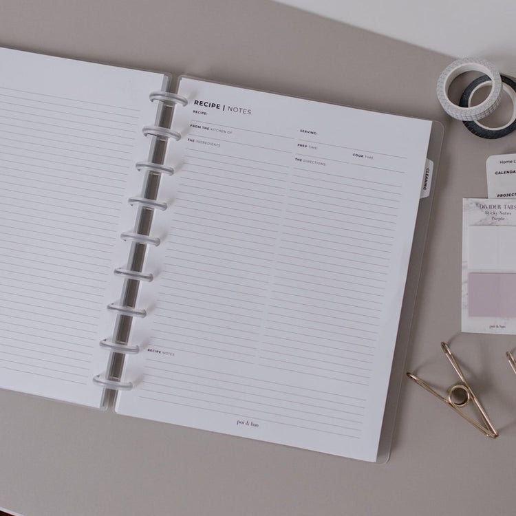 - Write your favorite recipes in our recipe inserts and save them in your Home Management Discbound!