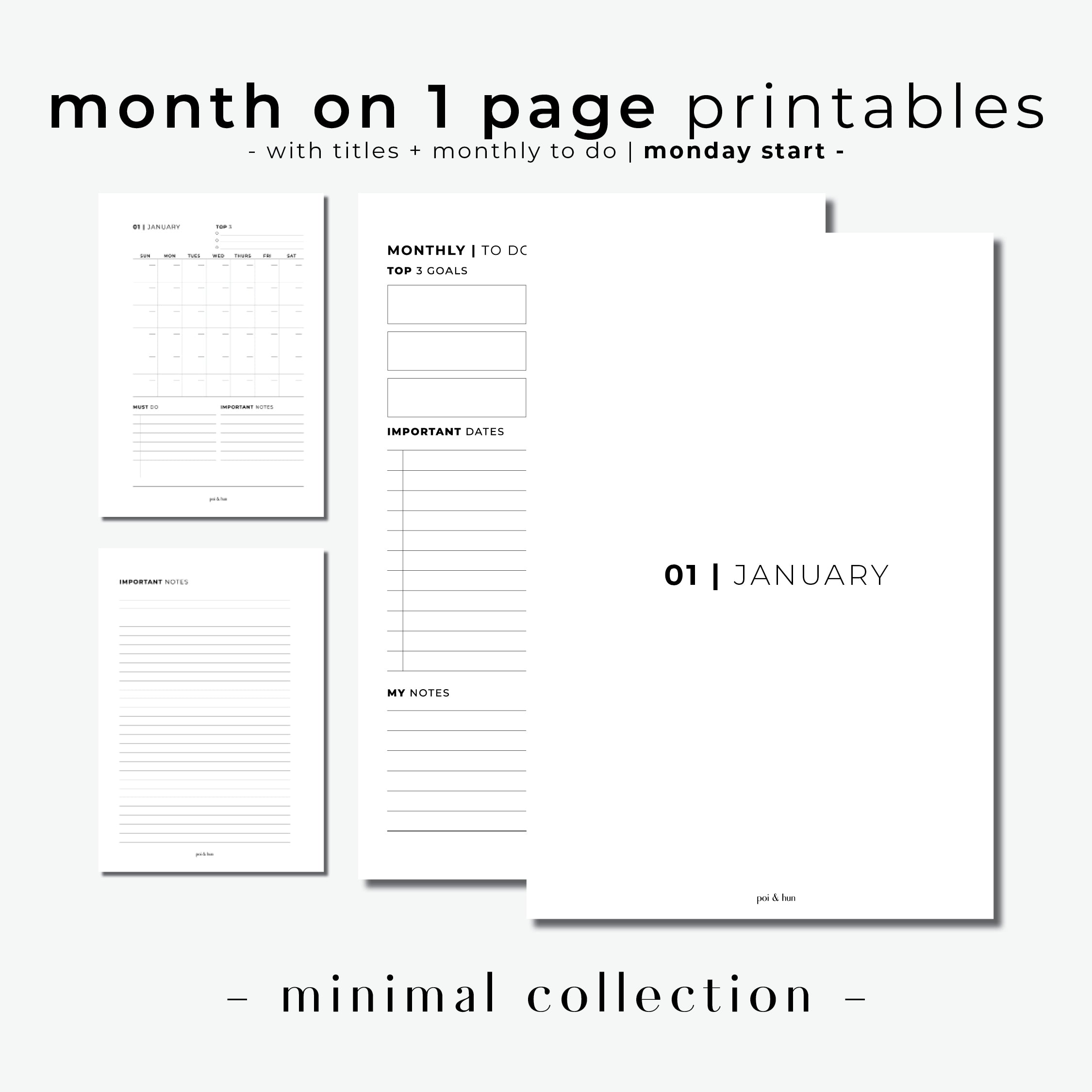 PRINTABLE // Month On 1 Page Planner Insert (MO1P) with Monthly Dashboard // Minimal