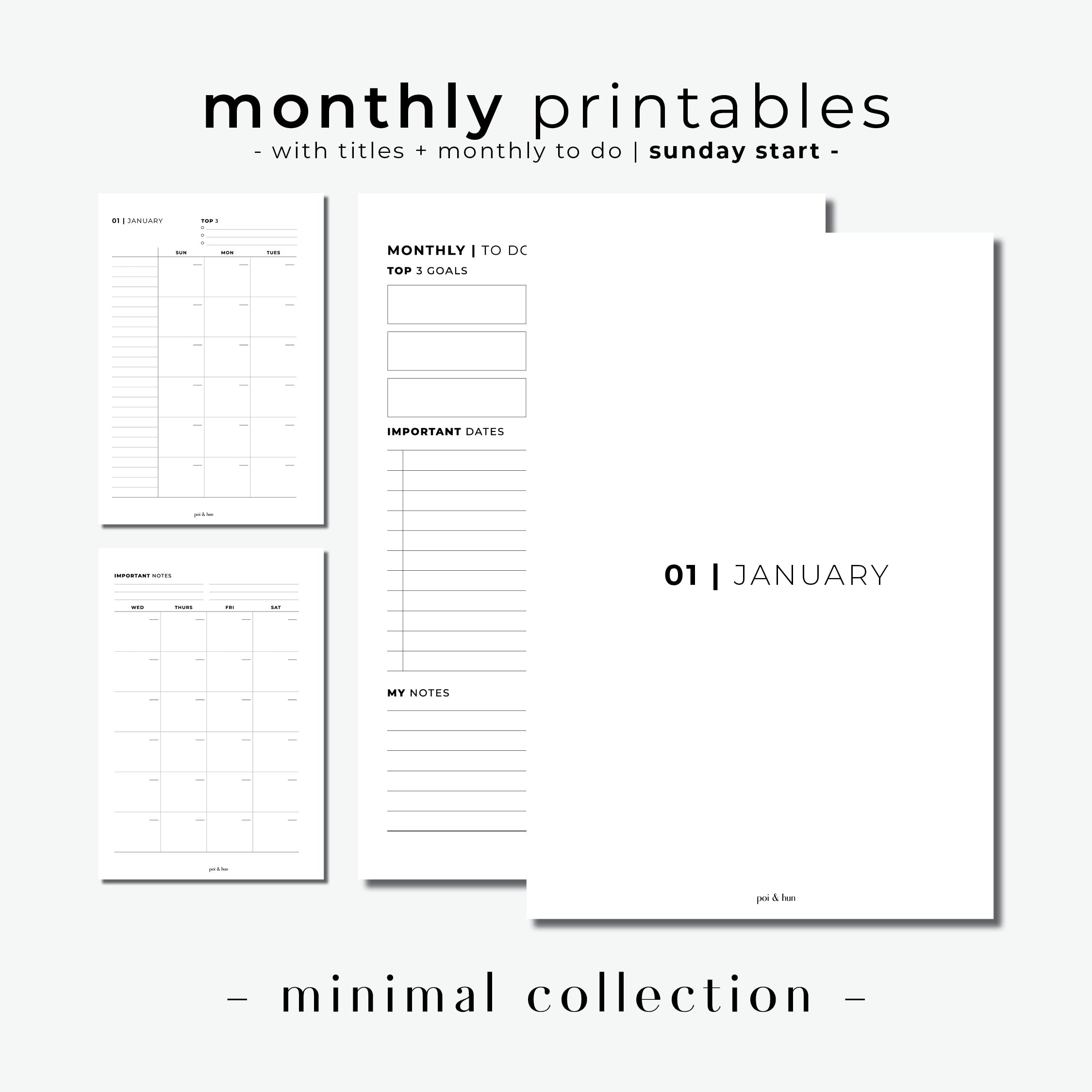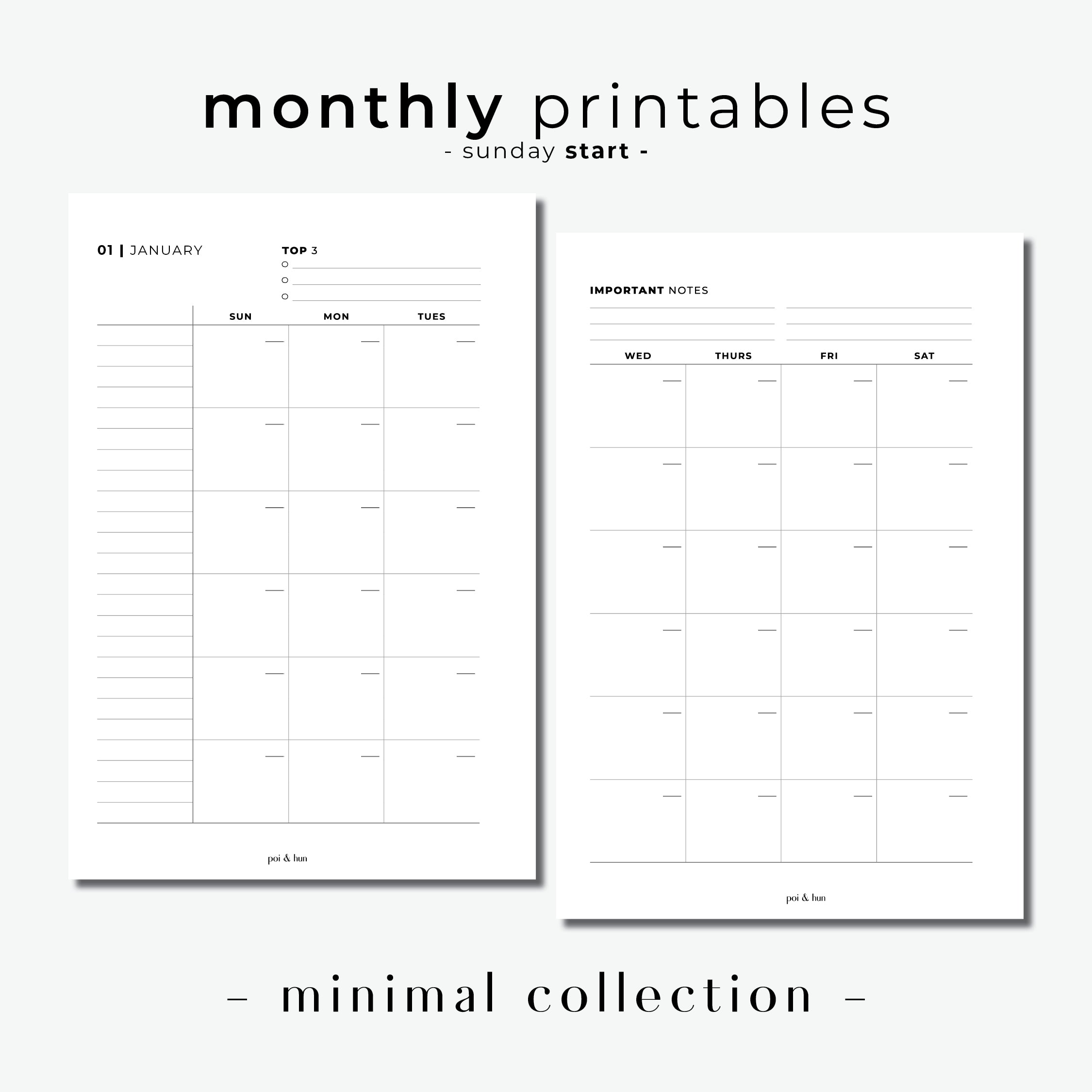 PRINTABLE // Monthly Planner Insert - MO2P // Minimal