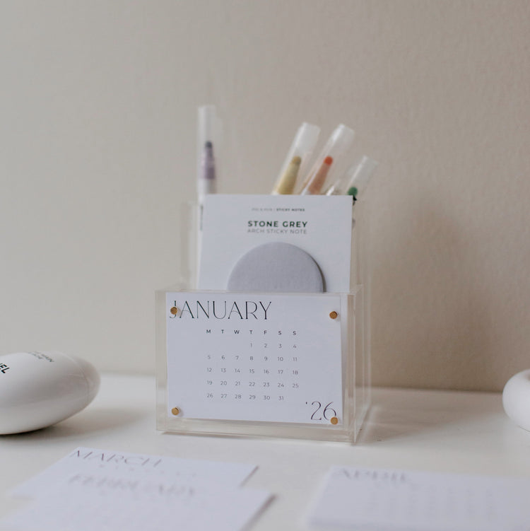 Display your Poi & Hun note card and organize your desk essentials with our unique Acrylic Pen + Card Holder. Its compact and sleek design will keep your desk minimal, yet functional.