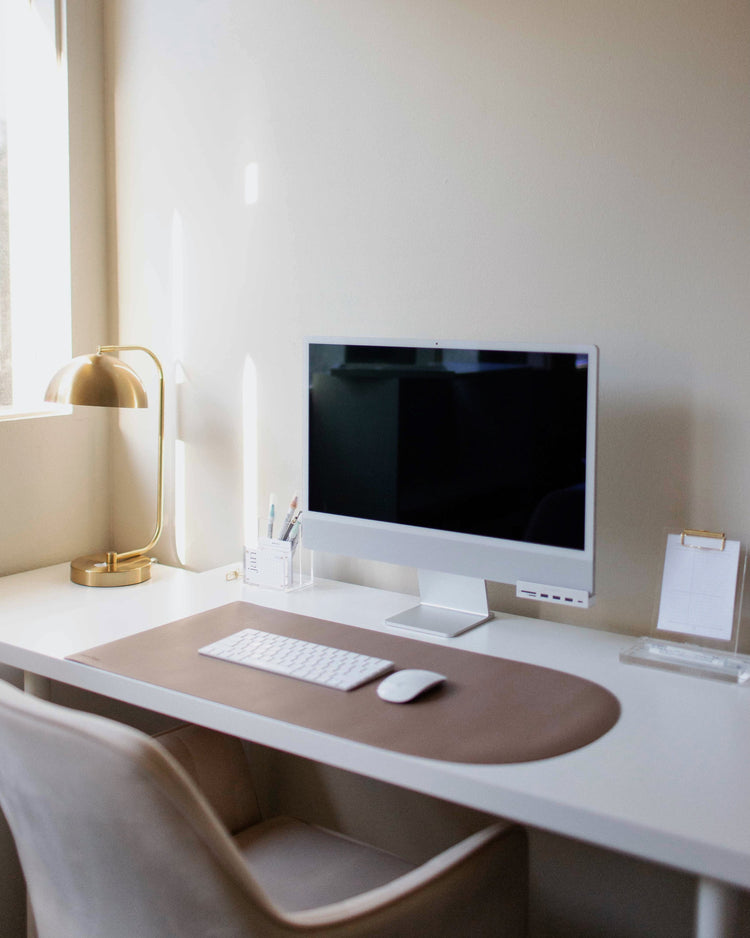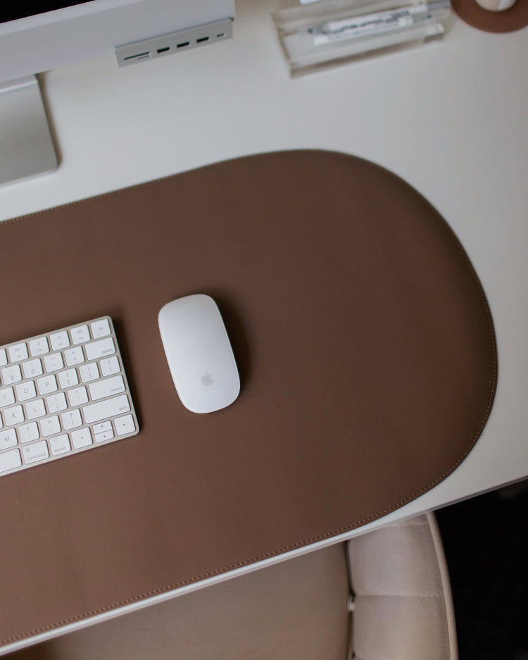 The high-quality vegan leather provides a durable and water-resistant surface, protecting your desk from scratches, spills, and stains. The Poi & Hun Arch Desk Mat is the perfect piece to building your tidy and efficient workspace.