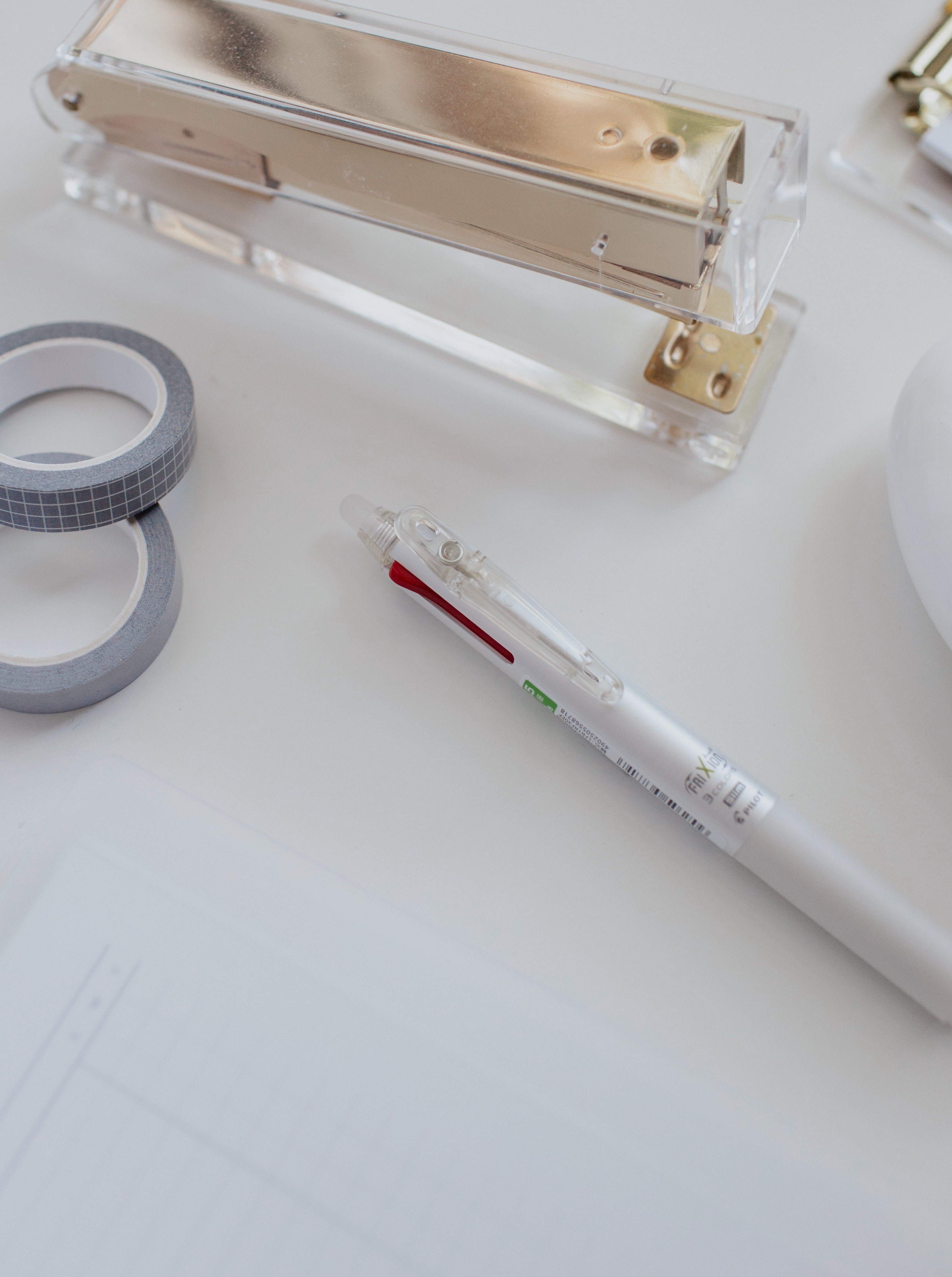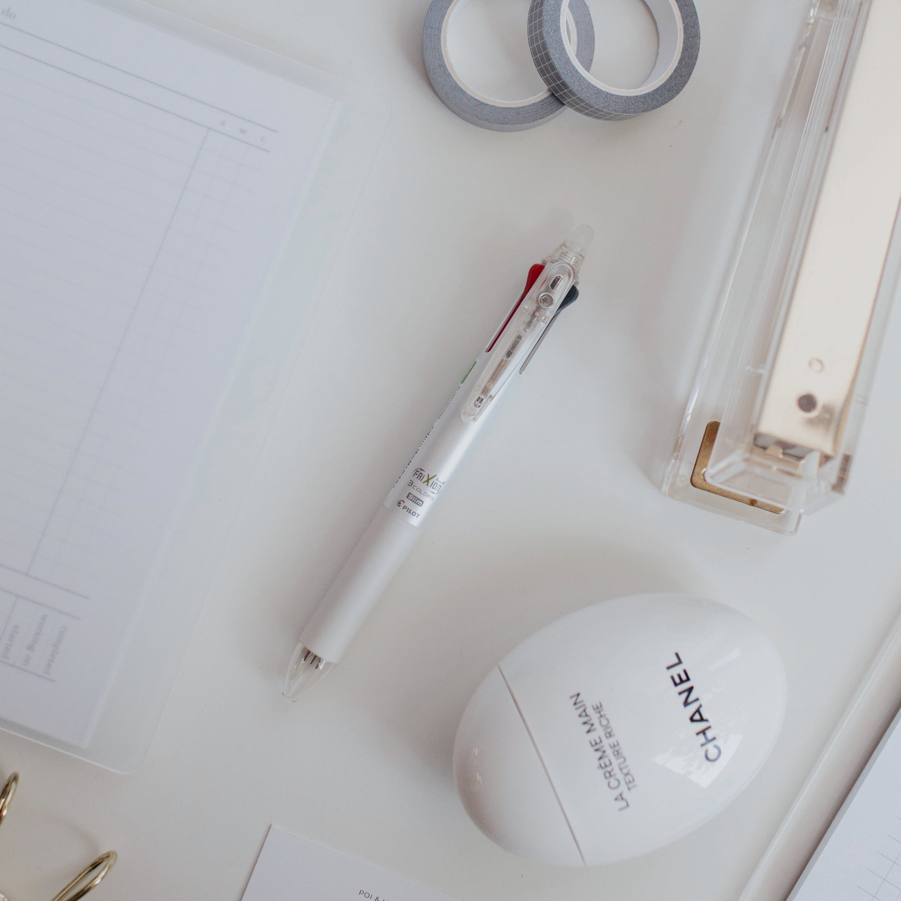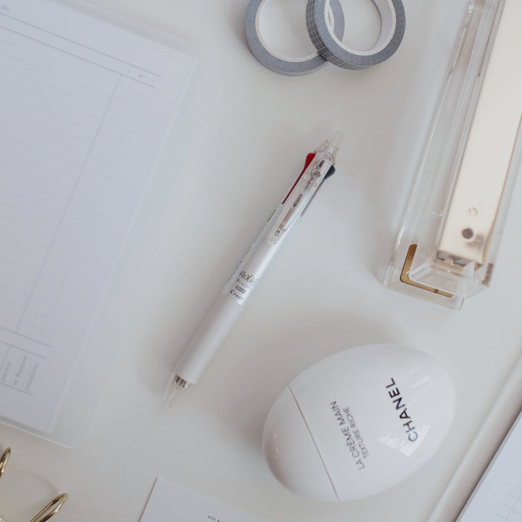 The FriXion Ball Knock Gel pen is minimal and lightweight. It features Pilot's popular FriXion erasable thermosensitive ink. Write your tentative notes with ink, then erase using the built-in eraser at the top of the pen.