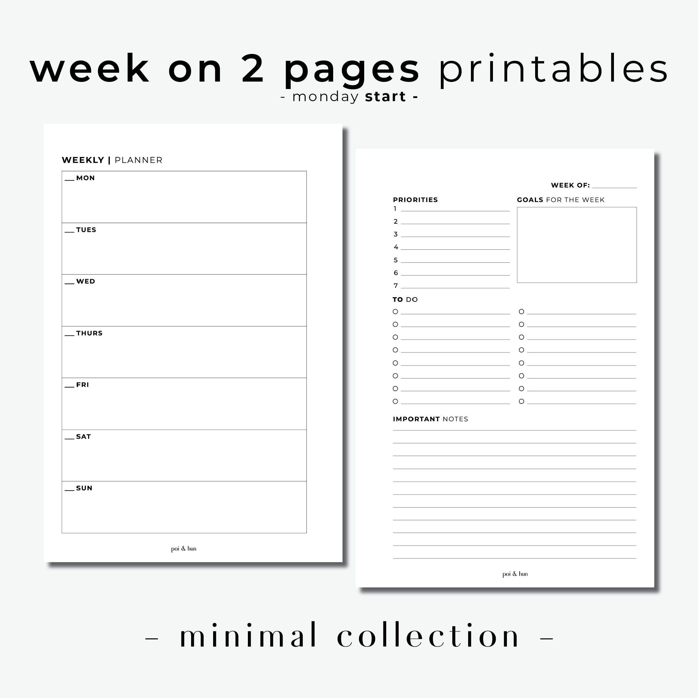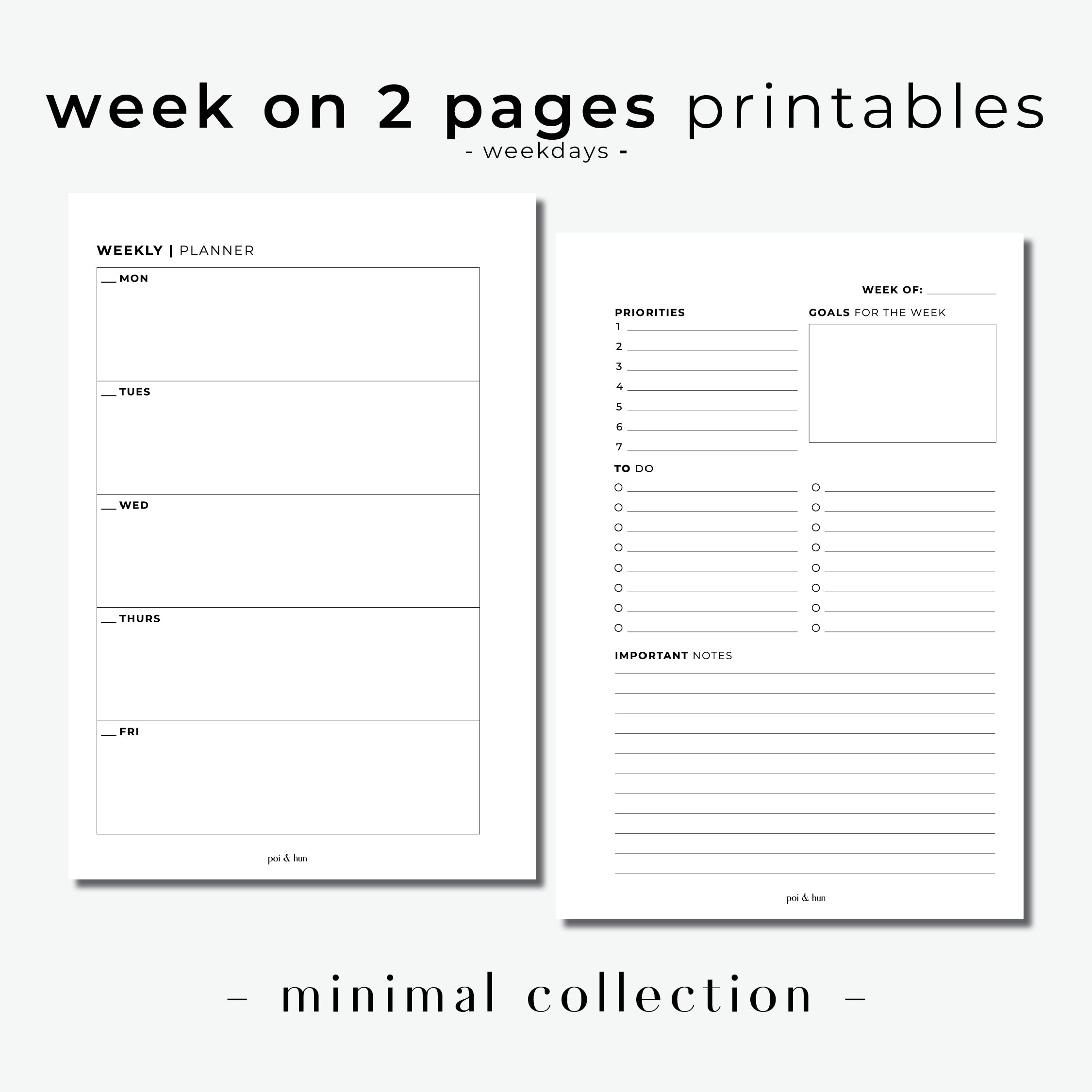 PRINTABLE // Week On 2 Pages Horizontal Planner Insert - WO2P // Minimal
