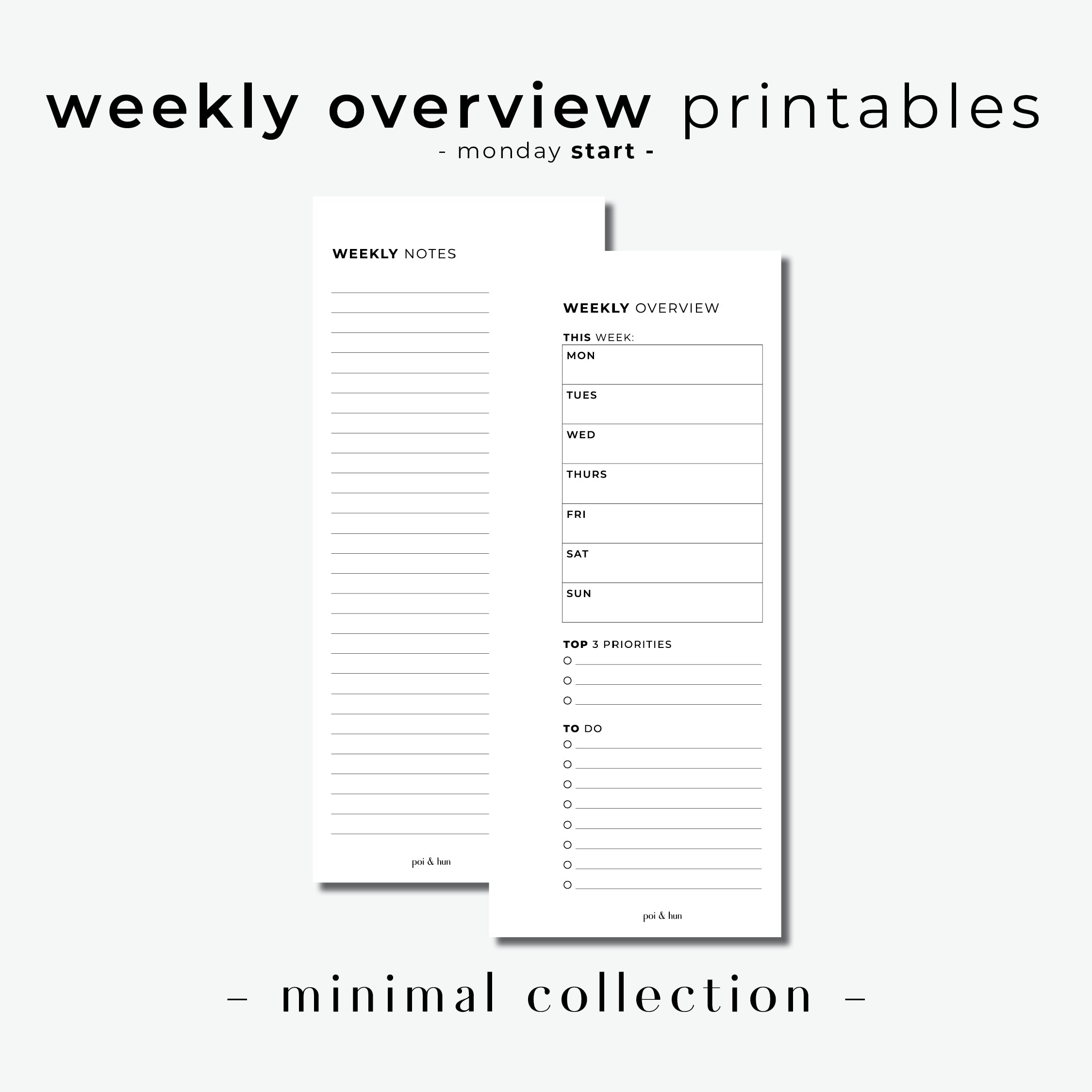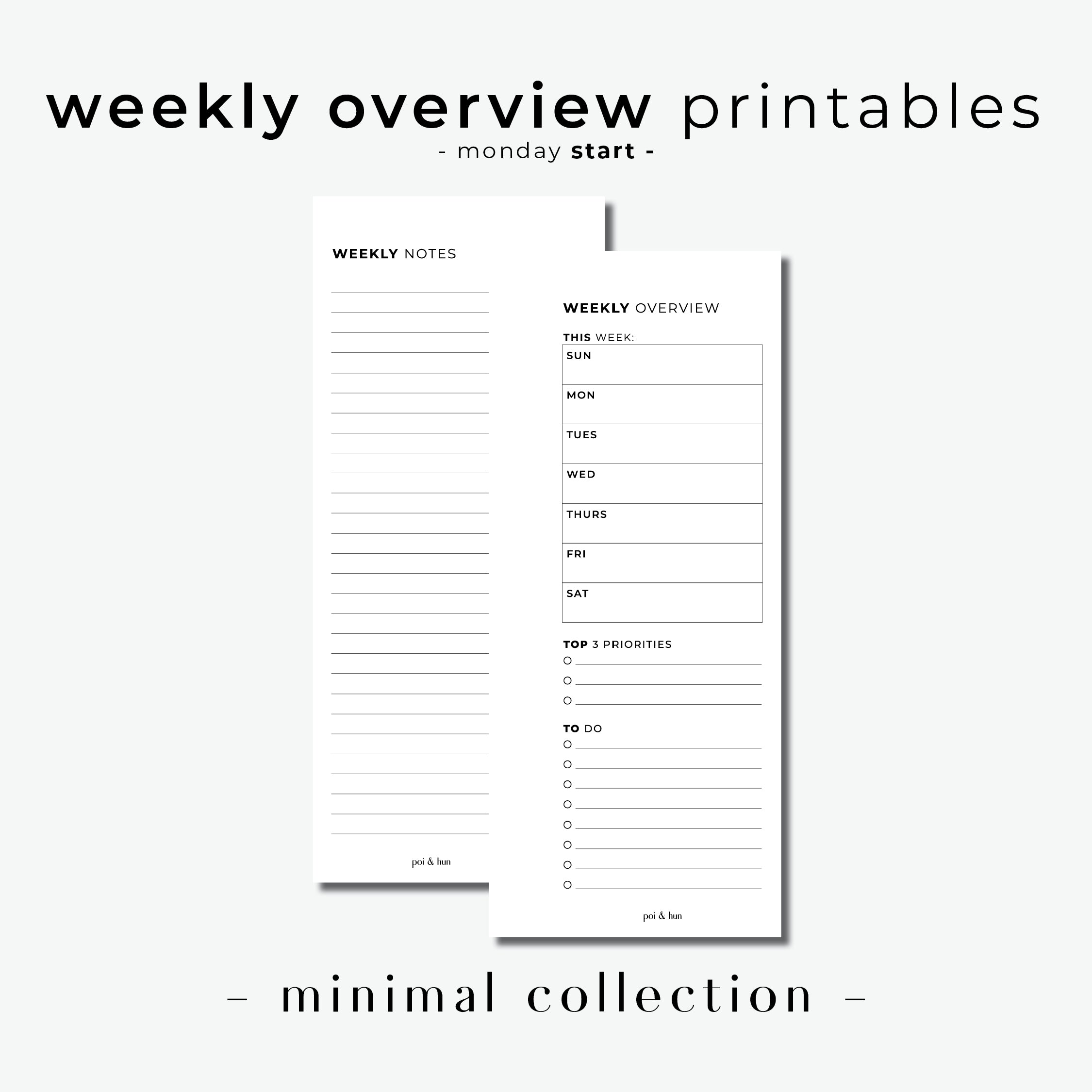 PRINTABLE // Weekly Overview Half Page Insert // Minimal